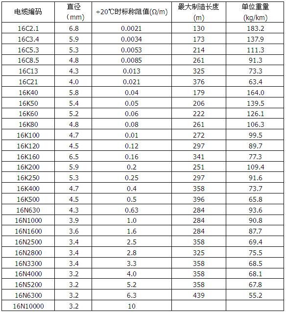 表(biao)格1 加熱(re)電纜規格(600V 單芯)
